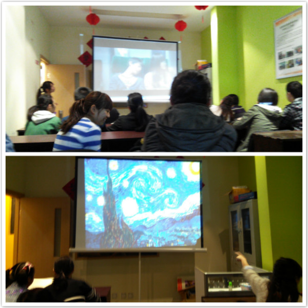 欣赏完电影《星空》中的片段后,老师向“星儿”们展示名画《星空》。