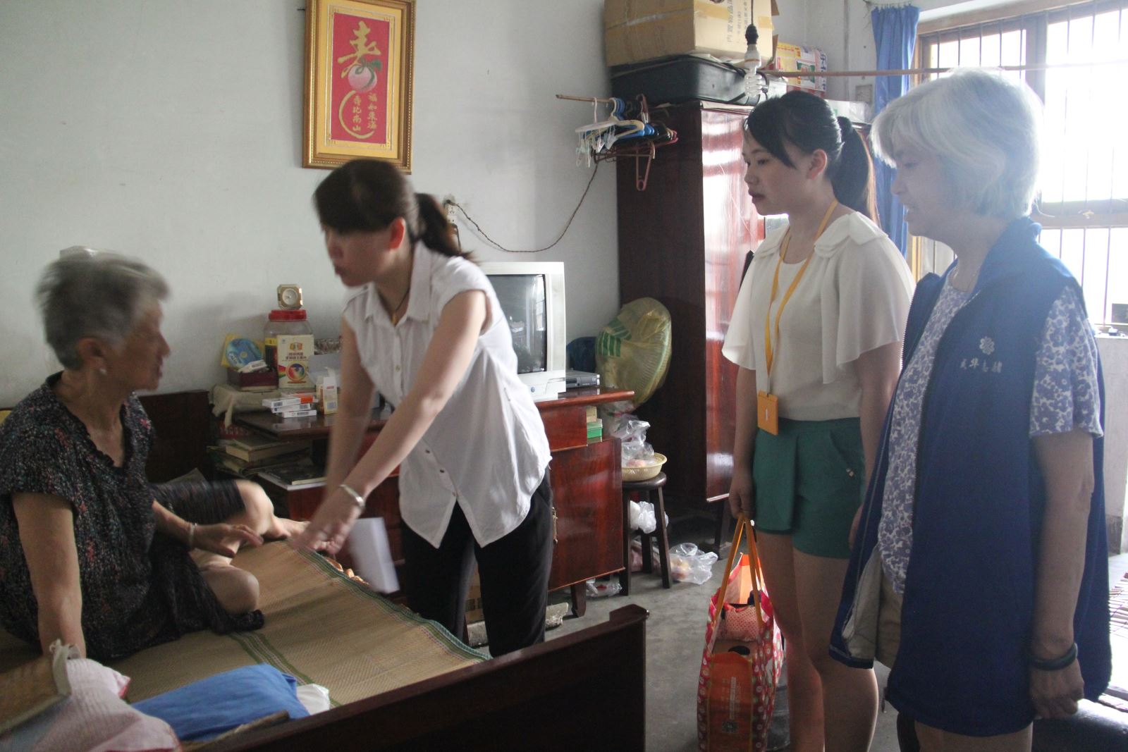 行动不便的贾婆婆只能在床上和我们聊天