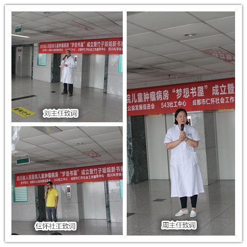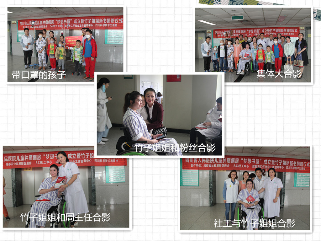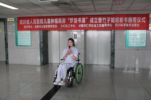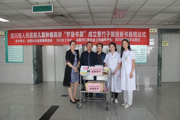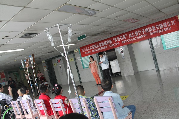 2016年9月23日下午两点半,由成都市云公益发展促进会、543社工中心、成都市仁怀社会工作服务中心、四川科学技术出版社共同举办的四川省人民医院儿童肿瘤病房“梦想书屋”成立暨竹子姐姐新书捐赠仪式活动在四川省人民医院第二住院楼9楼(儿科)大厅顺利开展。