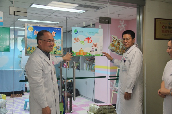 致词结束后,由医院领导刘主任、黄主任二人举行挂牌仪式,宣布“梦想书屋”正式成立,同时四川科技出版社也向“梦想书屋”捐赠大量图书供孩子们借阅。