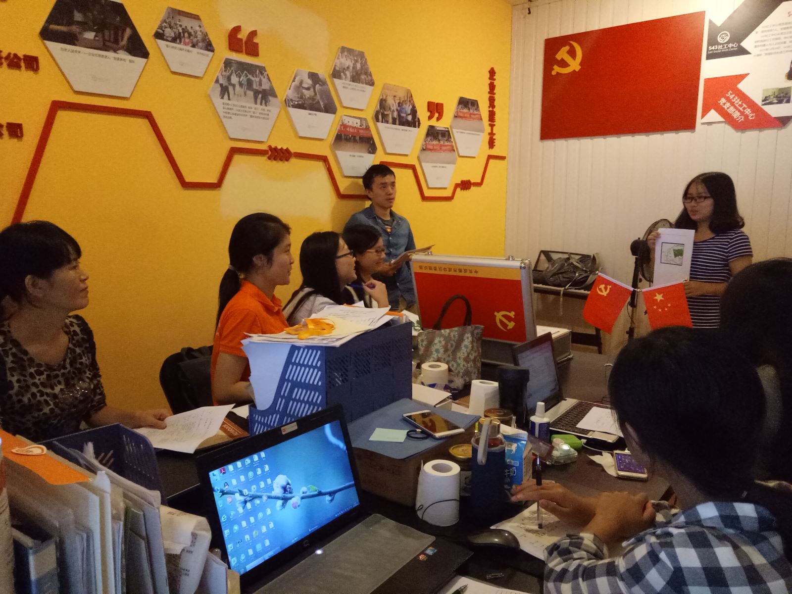 2016年9月28日上午10点30,543社工中心党支部组织党员和社工开展党支部两学一做学习教育活动,本期学习的主题是:党的历史、革命先辈和先进典型学习。学习党的历史,学习革命先辈和先进典型,深刻把握“两个先锋队”的本质和使命,进一步明确“四个服从”的要求,掌握党员领导干部必须具备的六项基本条件。