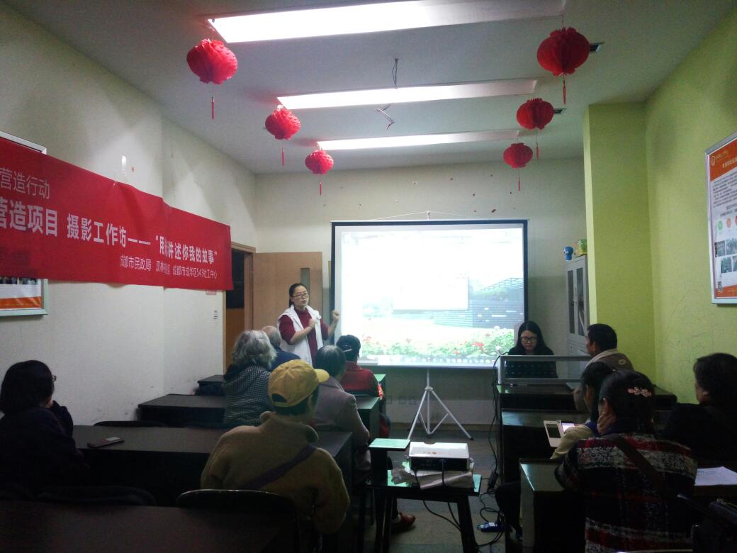11月10日上午九点半,由成都市民政局、双林中横路社区主办,543社工中心承办的摄影工作坊-“用光影讲述你我的故事”第三期活动如期开展。为了让活动的延续性增强,我们在社区招募到了有30年摄影经历、又长期热衷与公益事业的陈建新老师作为我们摄影工作坊的社区志愿者。