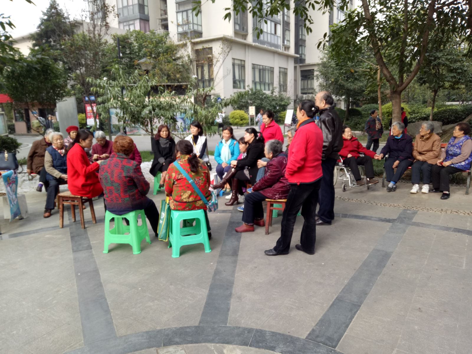 讲座开始,居民纷纷上前围观。