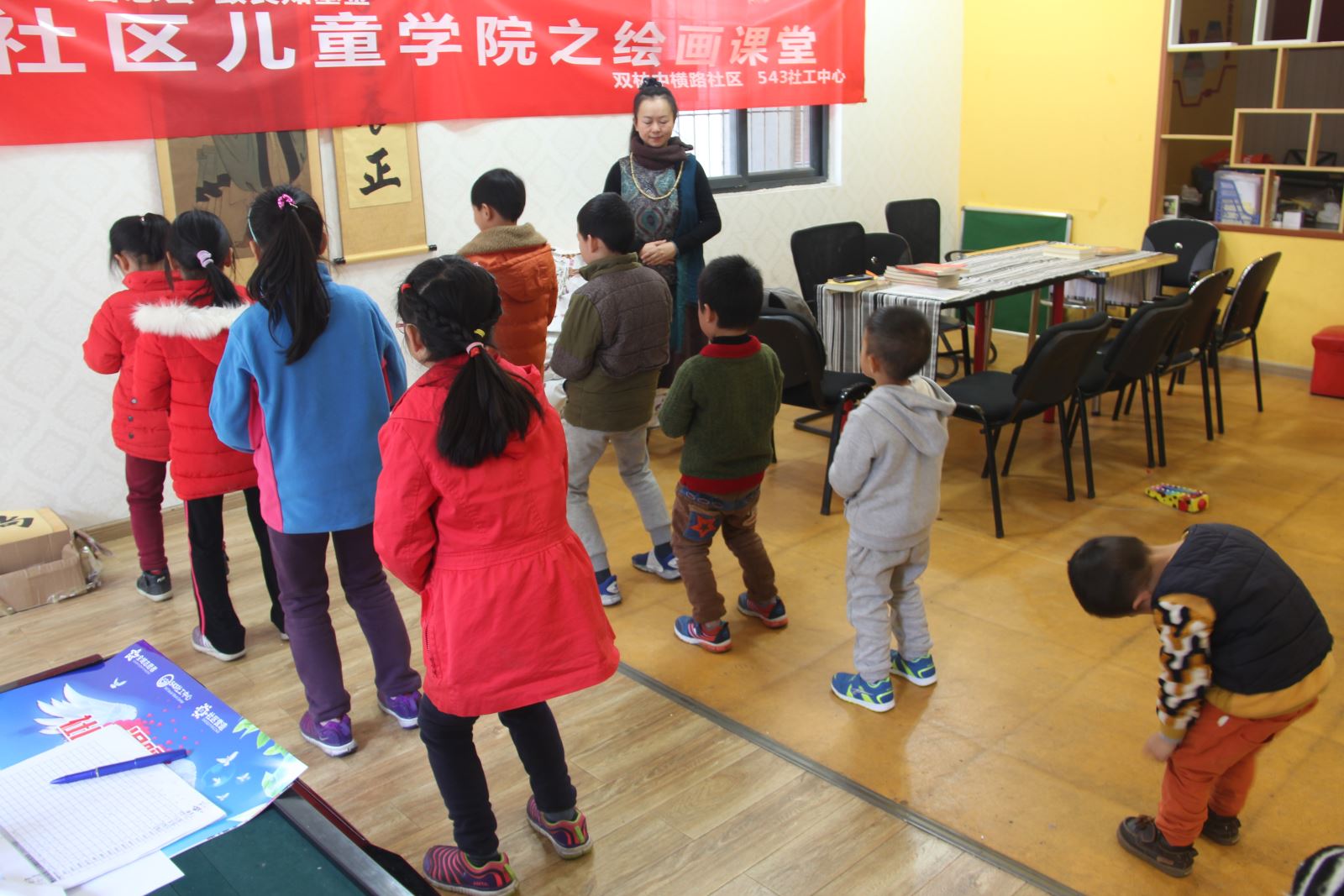 2016年11月26日,“经典诵读 书香润家”第38期活动,在543社工中心双桥活动点开展。下午两点,11位小朋友迎着明媚的阳光走入课堂,在李老师的带领下开始本周的课程!课堂开始前,是十五分钟的站桩时间,目的是让孩子能静下心来,集中注意力。孩子们自觉按年龄大小排列成两行,双脚打开与肩同宽,微微下蹲,一个个做得有模有样。