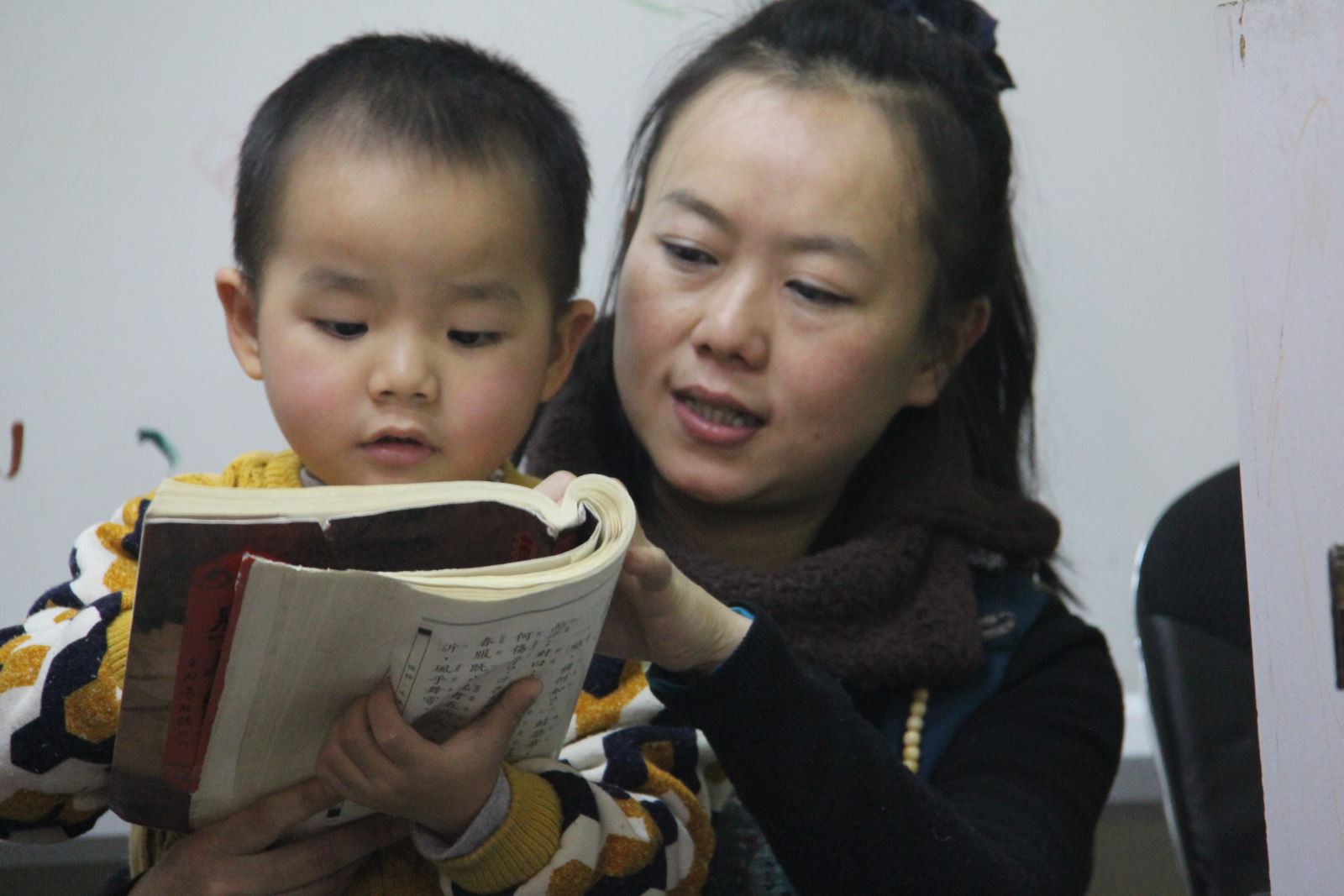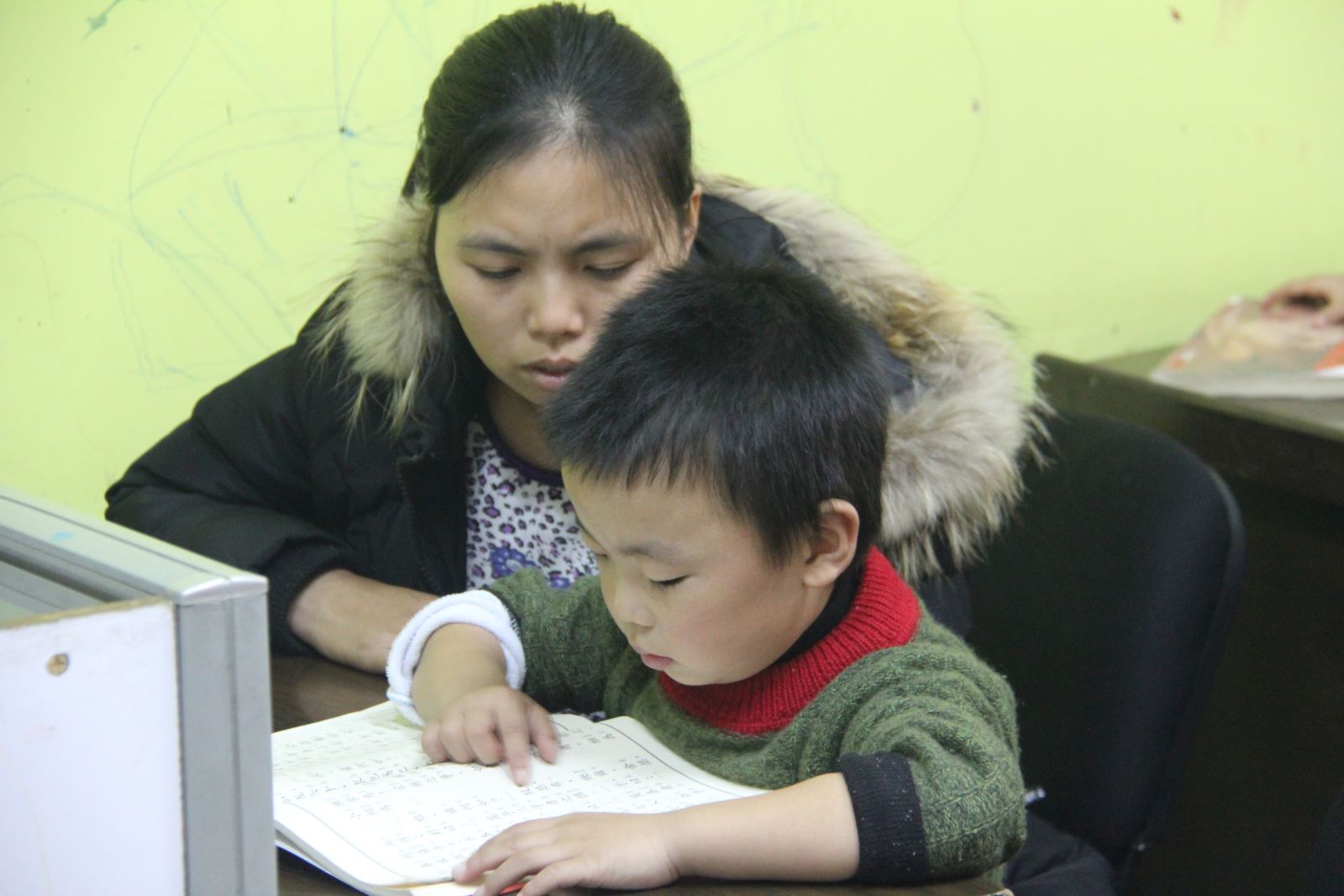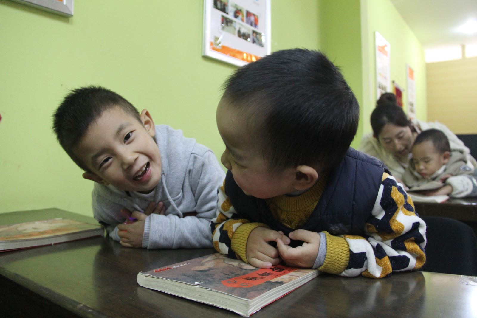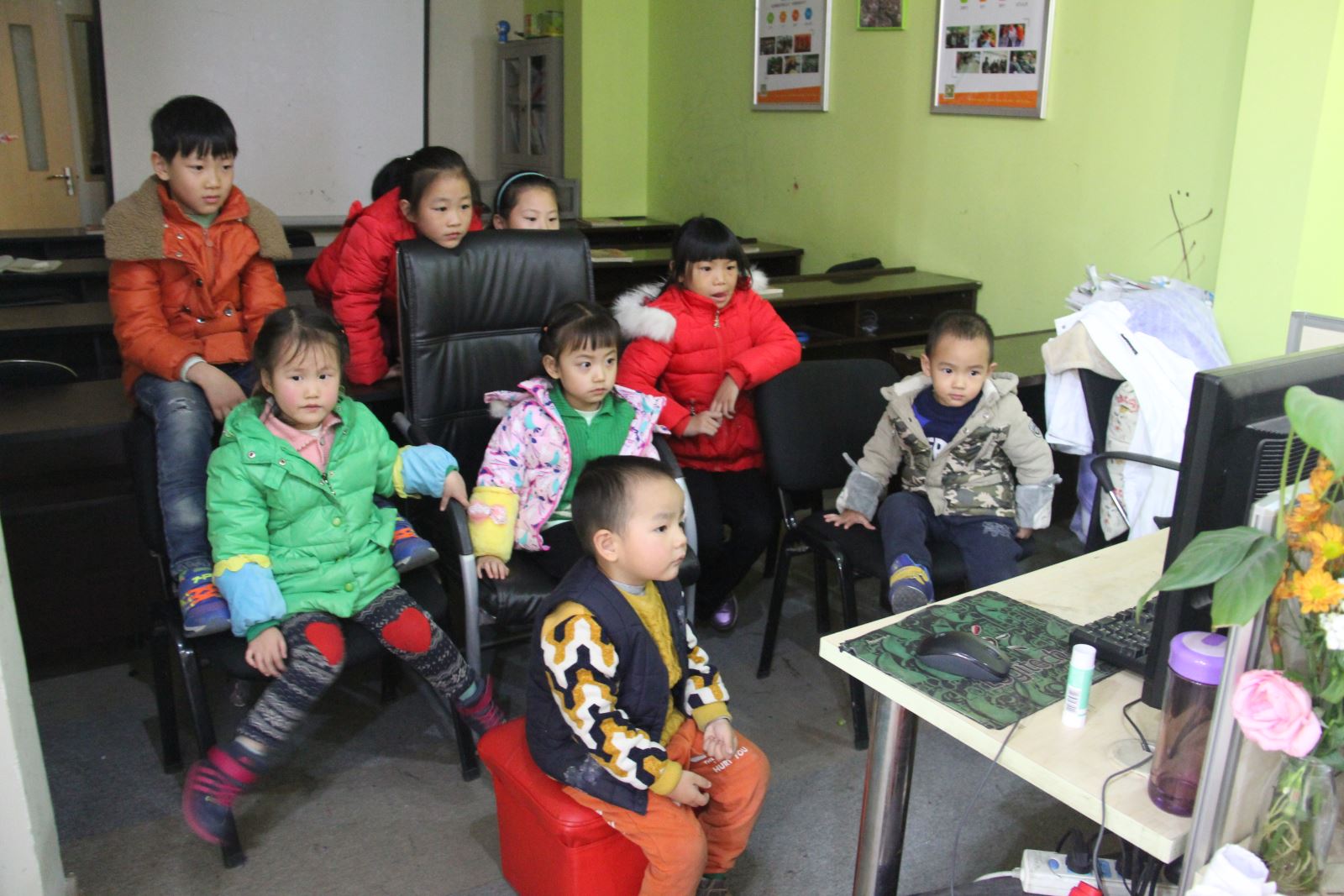 课后,小朋友们一起观看国学动画。