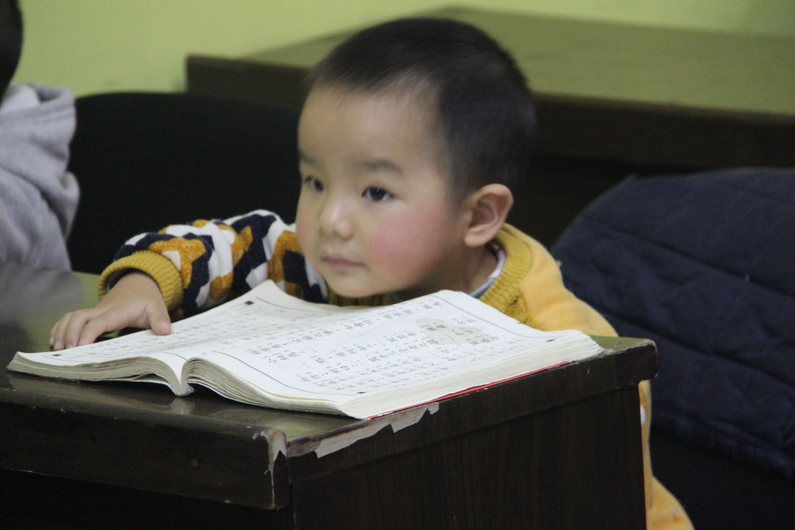 这位小朋友叫易振皓,今年3岁,小小年纪,背经却是厉害得很呢。