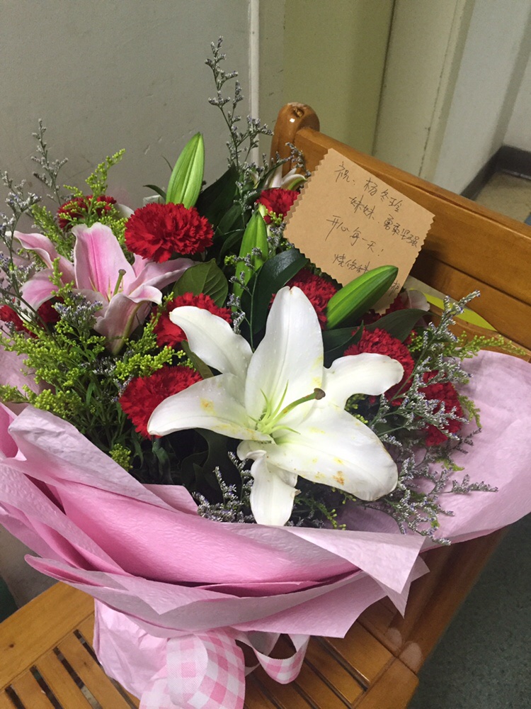 椅子上放着烧伤科室医护人员送给杨冬玲的鲜花