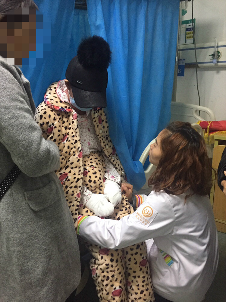 昨天下午,543社工中心医务社工护送杨冬玲至康复中心进行后续康复治疗,我们再次见到这这个乐观、坚强的女孩,虽然她每走一步都显得颤颤巍巍,但妈妈和医务社工始终陪在她的身边,用爱鼓励着她。
