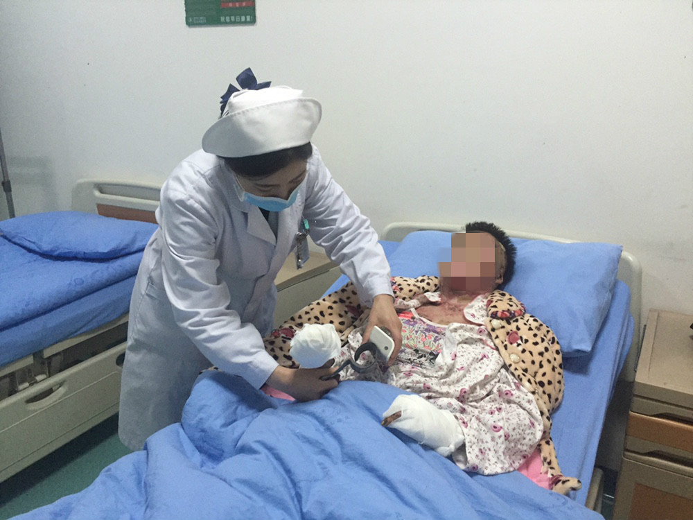 刚躺下没多久,主治医生及其他医生遍来到床前查看杨冬玲烧伤的情况,表示第二天会进行全面检查,确定恢复方案。随后,护士在一旁,耐心的安慰、开导她,让她要对自己和医院有信心,一起努力度过难关!