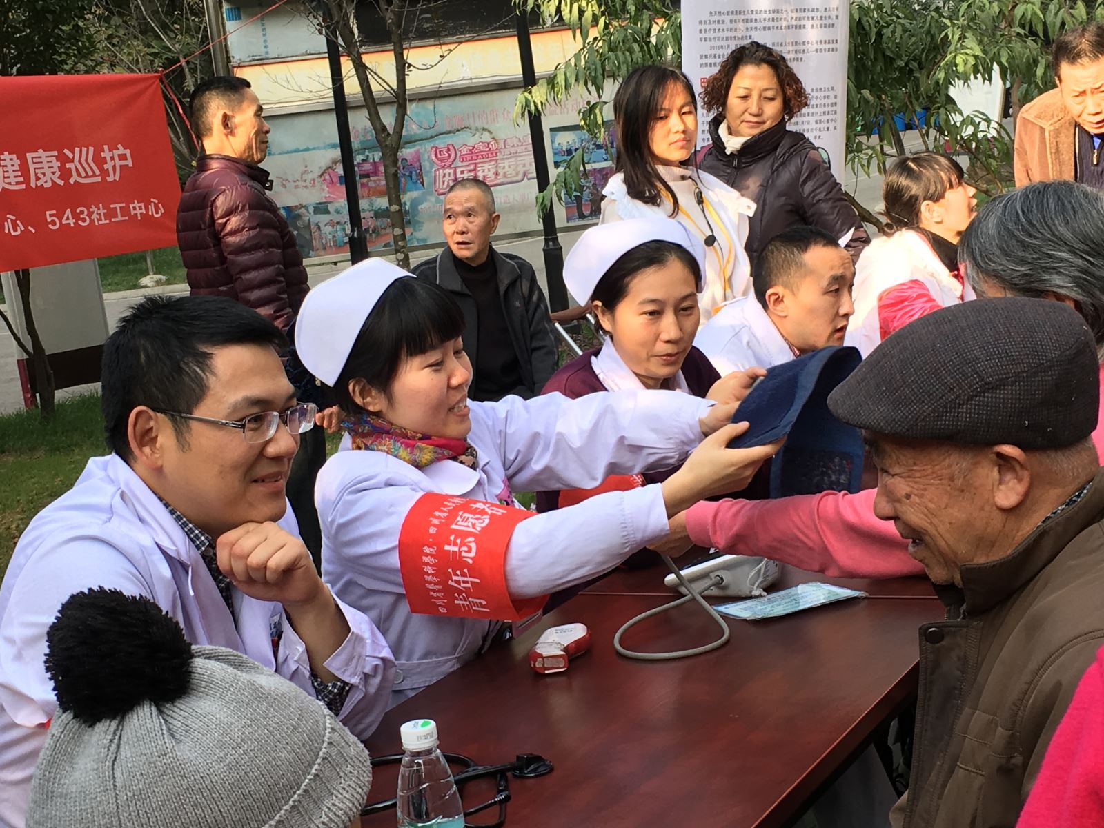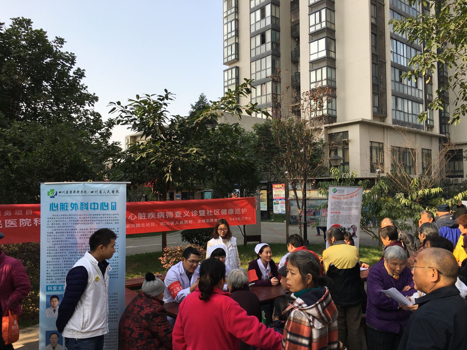 为提高居民健康意识,更好地为社区居民服务,做到有病早医、无病早防。2016年11月30日,由四川省人民医院、543社工中心、全域志愿者、水碾河路北联合举办的“四川省人民医院科普进基层——心脏疾病筛查义诊暨社区健康巡护”活动在蜀都惠园休闲广场顺利开展。当天共80余名社区居民参与到义诊活动中。