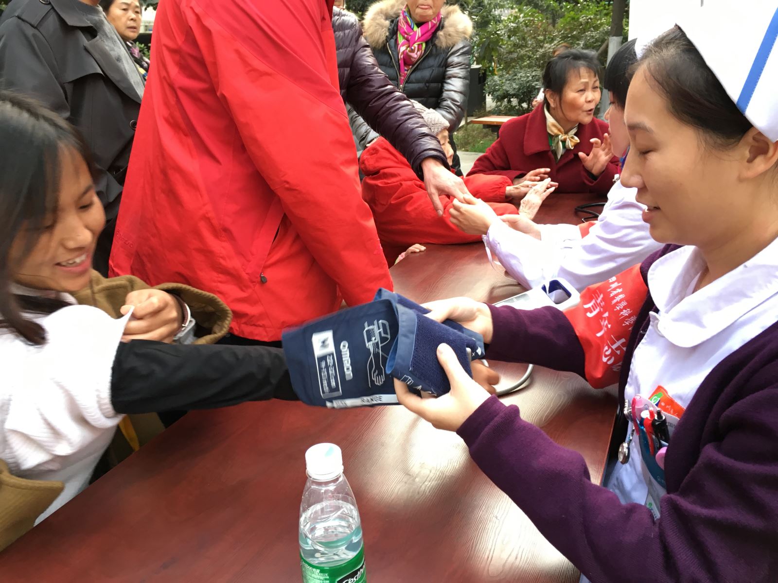 下午两点,居民早早就来到了做义诊活动的广场上等待着。当看到省医的医护人员到来后,广场顿时沸腾了起来,居民们纷纷开始签到、排队参与活动。在义诊中,心脏外科的医生们耐心的给居民们听诊、讲解病理、分析病情、嘱咐用药;护士细心的为居民测血压、量心率;居民们纷纷跟医护讲起了病史与用药情况,希望医生给出意见和建议,活动中不时还有年过90的老人前来义诊,老人们看到自己不出家门都能够接受到三甲综合医院的医护的治疗,都非常高兴,并不停的夸心脏外科的医生是个好医生。
