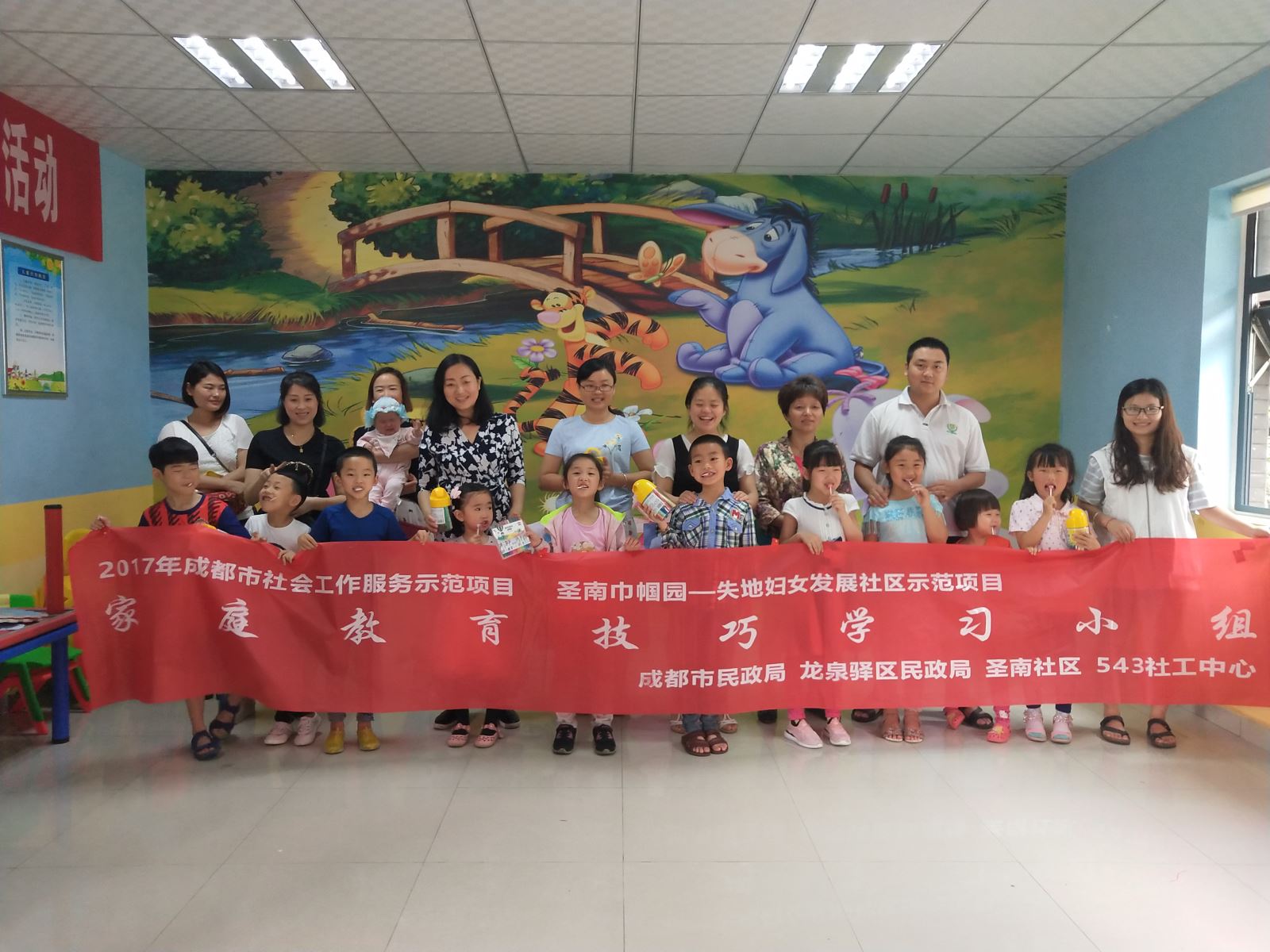 【圣南社区驻点·社工黄晴讯】6月3日上午9时30分,圣南巾帼园——失地妇女发展社区示范项目家庭教育技巧学习小组8节活动在圣南社区儿童之家如期开展,本次小组活动共有10组亲子家庭参与。