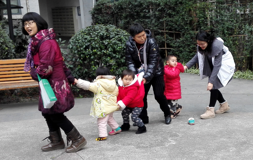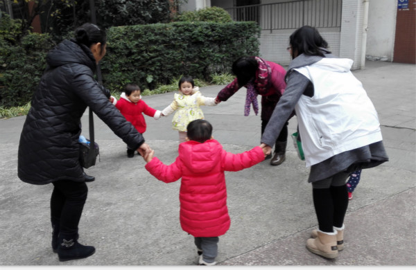 社工和家长陪着宝贝们玩游戏