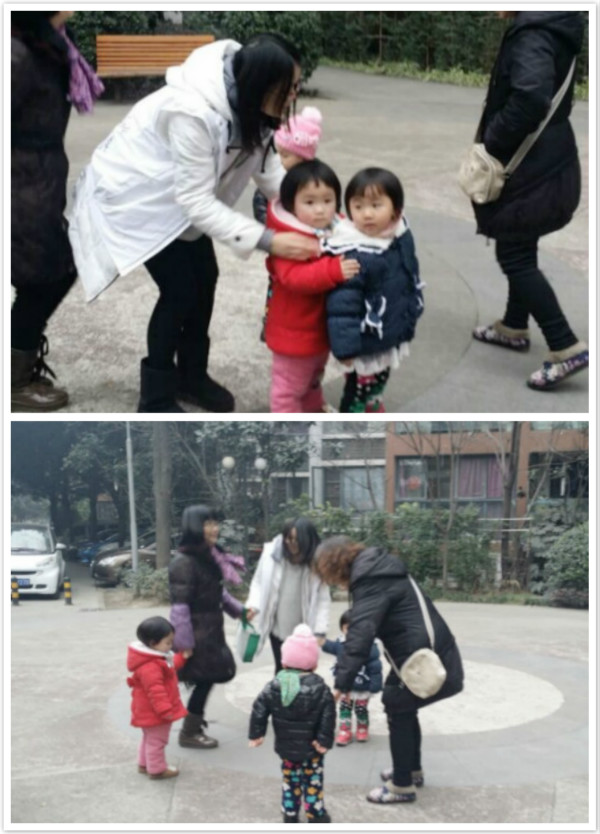 户外游戏中,社工教孩子们跳兔子舞,引导宝贝和家长积极参与互动。在欢快的音乐声中,大家都跳得非常开心!