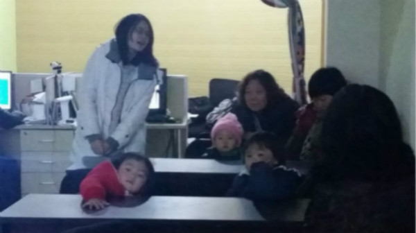在社工的引导下,宝贝们认真观影、学习!