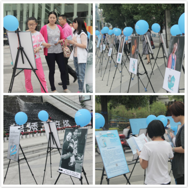 自闭症家庭纪实摄影展:引来不少路人驻足参展,拍照留念,送祝福!