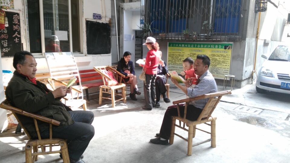 深入院落,将倡导书递到居民手中