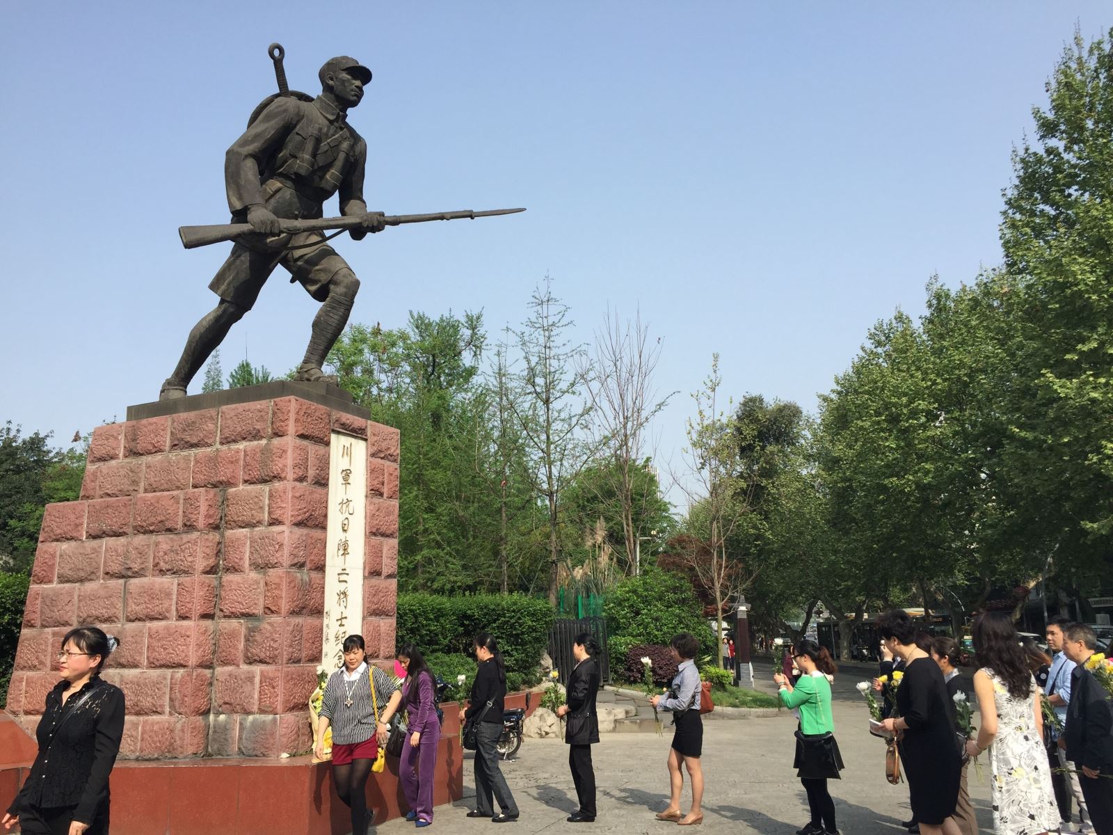“满衣血泪与尘埃,乱后还乡亦可哀。风雨梨花寒食过,几家坟上子孙来。”4月2日上午,由543社工张丽带领亚非牙科、人口宾馆等志愿者,来到人民公园川军抗日阵亡将士纪念碑前,与大家一起分享烈士们动人而悲壮的故事。虔诚三分钟默哀,进献鲜菊,将文明环保与缅怀钦佩之情融为一体,寄托哀思。