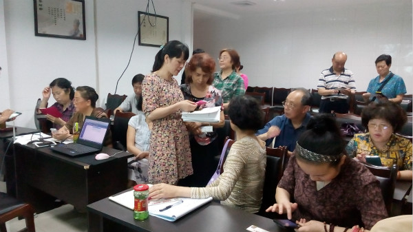 下午2点半,智能手机培训班于羊市街多功能会议室隆重开班。针对新开展的课程,社工特别挑选了相关学习书籍、手册发放给前来参加活动的30位社区居民。结合相关书籍,社工现场“手把手”引导,包括微信、QQ聊天及图片发送、文件传输等,并一一解疑答惑。