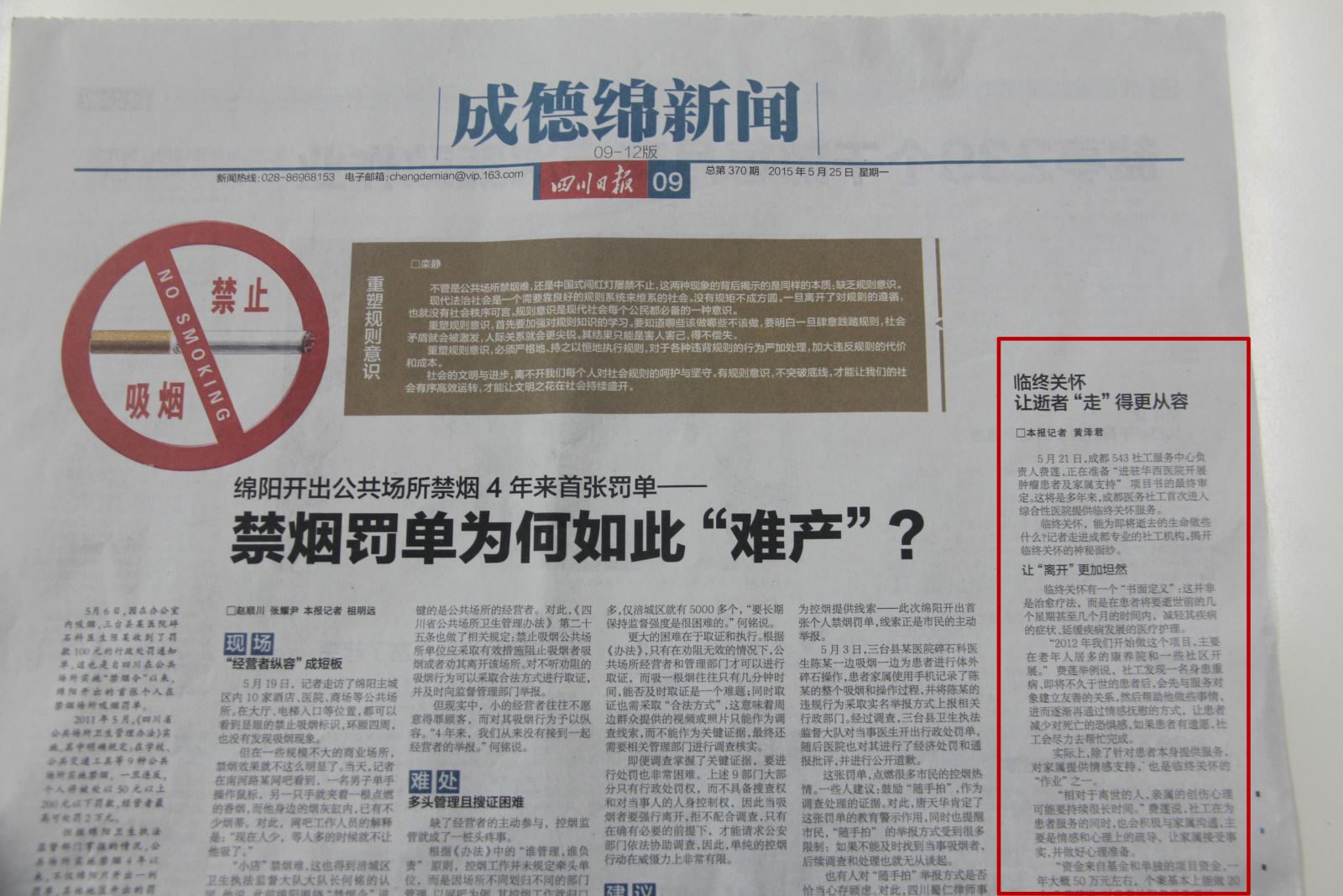 最大的进步,是专业的医务社工即将进入华西医院。“今年成都市民政局给予了项目支持,我们将与华西医院合作,对危重肿瘤患者提供临终关怀服务。”费莲说,目前医院已为“543”准备好了驻点场地,6月初,项目就将开始。