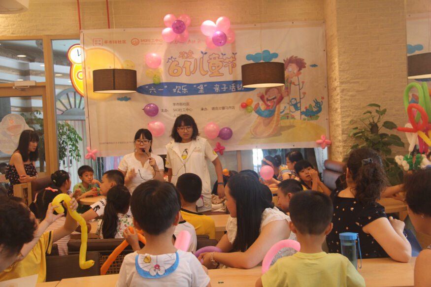由羊市街社区、543社工中心、人口宾馆主办,德克士骡马市店承办的“六一欢乐堡亲子活动”于6月1日下午热闹开场!30位来自羊市街社区的小朋友们在家长的陪同下参与了现场的各类互动活动。其中最小的宝贝2岁多,最大的小朋友12岁。