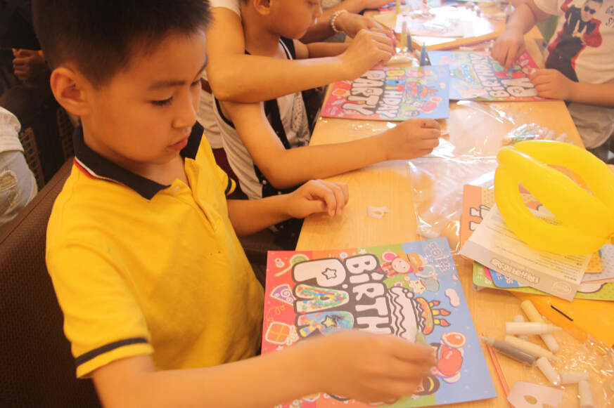 “小朋友们,首先我们会将这份‘蛋糕’发给大家,至于‘蛋糕’会变得如何美丽,则需要大家天马行空了哦~~”543社工带领小朋友们开启了热身小游戏是“沙画蛋糕”,将五颜六色的细沙倒入“蛋糕”装的粘贴纸上,尽情发挥想象,缔造出最美丽的蛋糕!