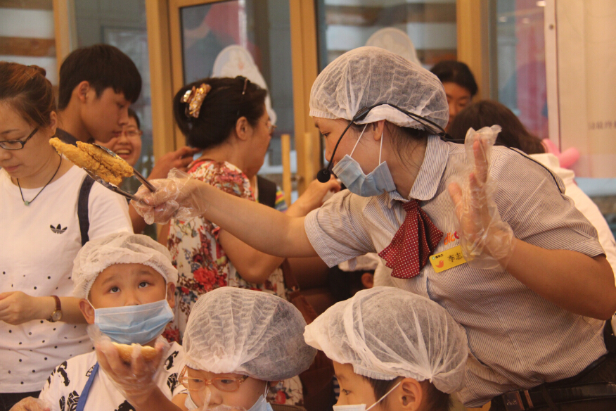 看到沙画,孩子们都专注起来!有的小朋友细心撕去张贴纸,小心翼翼将五彩细沙倒入其中;有的小宝贝在家长的协助下,用心创作亲子画;有的小朋友则邀约小伙伴一同出谋划策,团体制作……20分钟后,一幅幅美妙绝伦的蛋糕沙画完美出炉。德克士经理为了奖励孩子们的创新思维,分批带领孩子们进入神秘的西式快餐操作间观看。