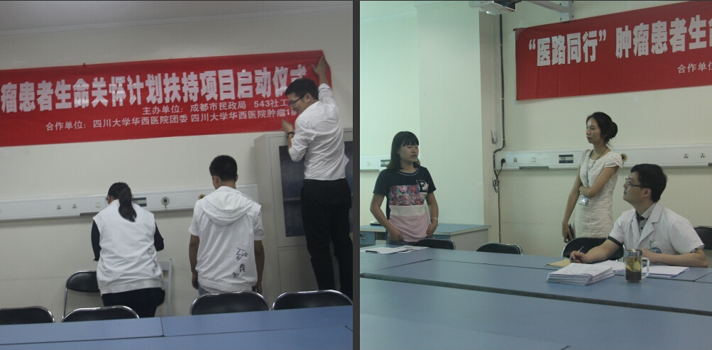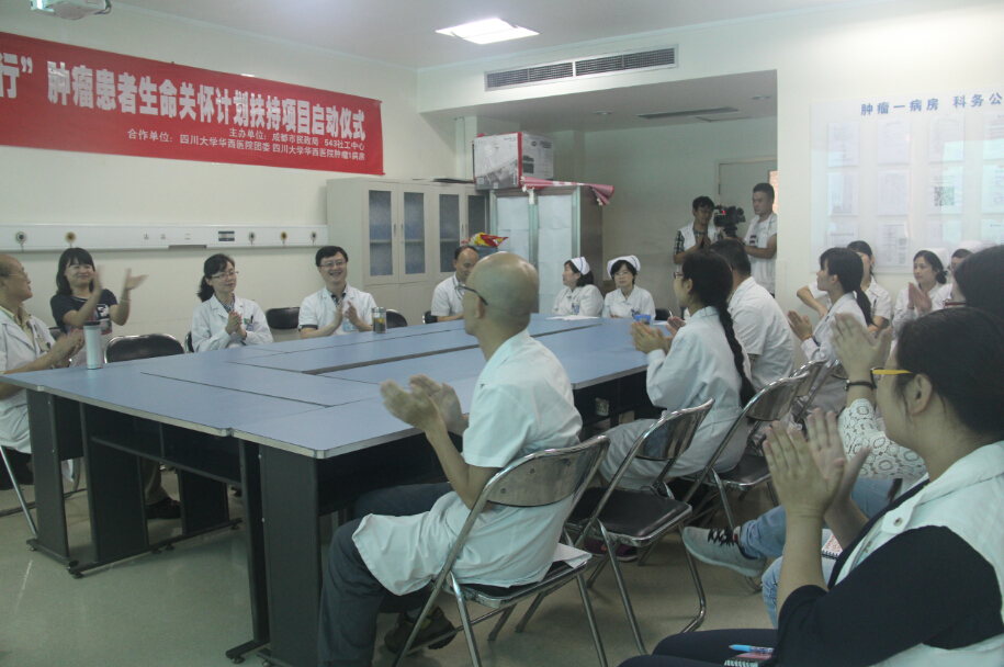 “现在,我宣布,‘医路同行’肿瘤患者生命关怀计划扶持项目,正式启动!”6月24日下午5点,在四川大学华西医院(以下简称华西医院)第三住院楼六楼肿瘤住院部会议室内,543社工进驻华西医院开展“医路同行”肿瘤患者生命关怀计划扶持项目,在热烈的掌声中顺利启动!