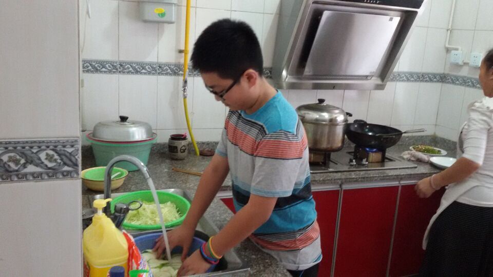 孩子们分工明确,有的打扫卫生、有的清理房间、有的洗菜,有的炒菜,和543居家养老自助的老人们话家常,聊心事,不时关心他们的健康、生活、饮食等,耐心聆听他们的心声,忙的不亦乐乎,让老人们切身感受到了亲人般的温暖。