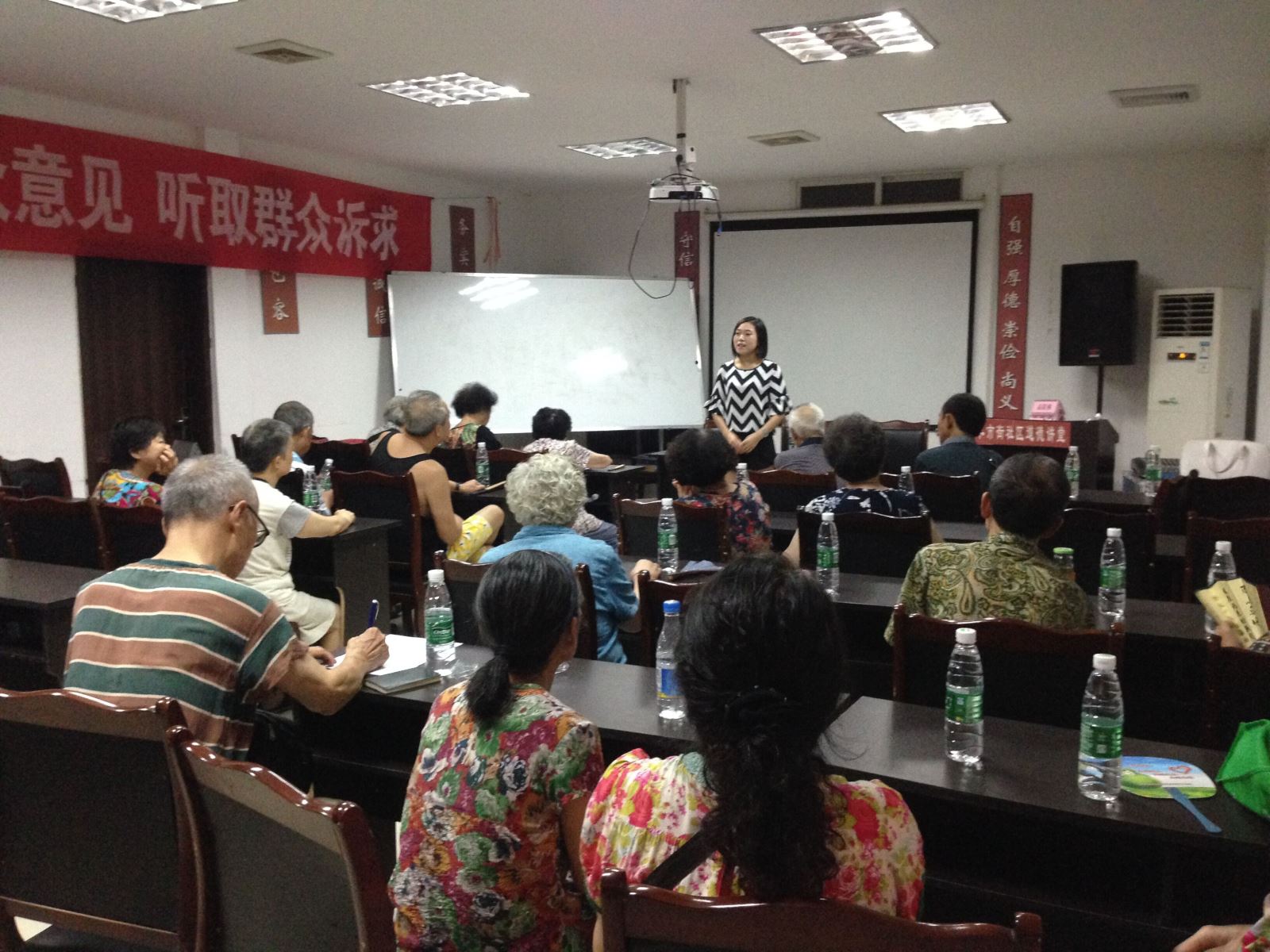 在543社工的现场协助中,40余位居民有序签到坐好,同“四个全面”主题巡讲团一同开启了一场有关“依法治市”的知识之旅。百姓故事员张老师通过轻松的方式给现场居民们讲述了多个真实发生在老百姓身边的感人故事,生动的向大家诠释了依法治市的重要意义。