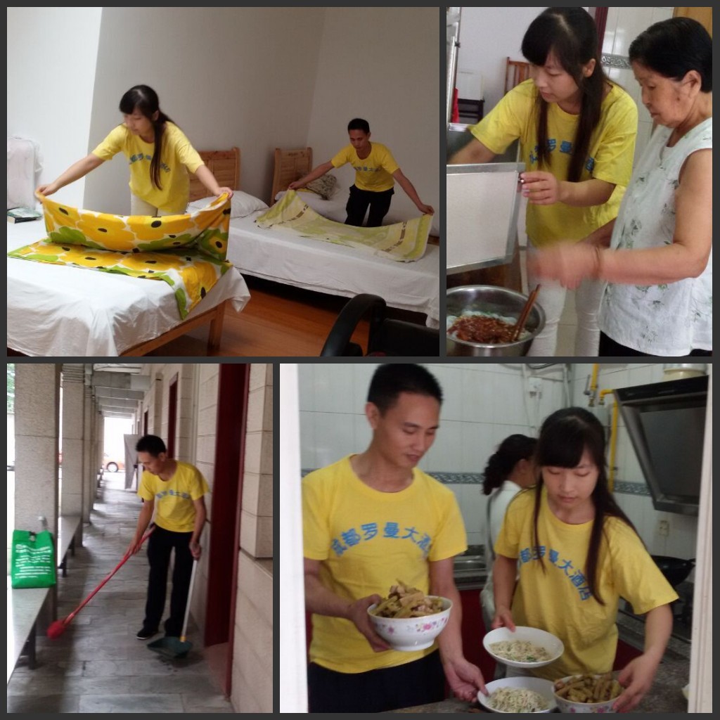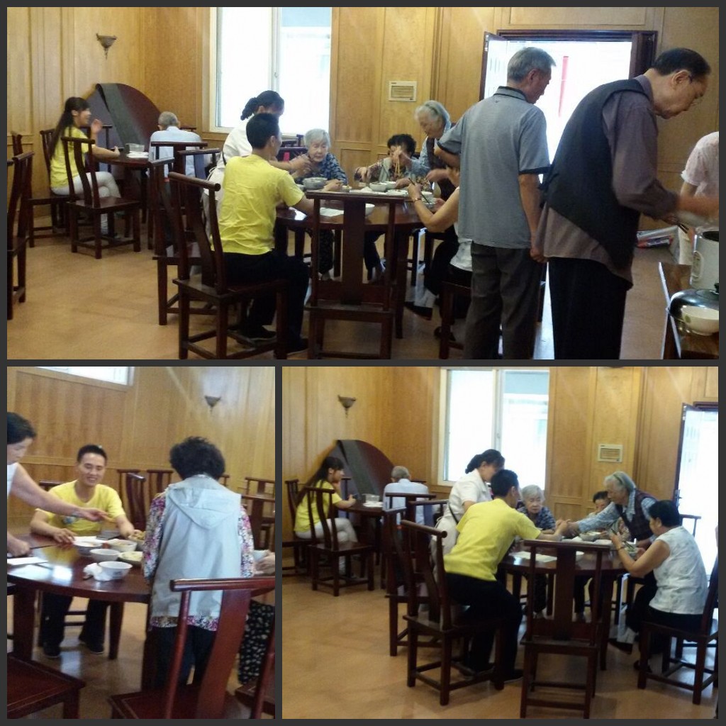 床铺折叠、打扫卫生、协助做菜、端菜送饭,不只是志愿者,更是亲人!老人们看到“孩子们”勤快的举动,都感动不已。转眼,午饭时间到,志愿者们忙碌了一早上,也完成了今天的志愿行动。然而,在老人们的热情挽留下,同老人们欢乐共进午餐。