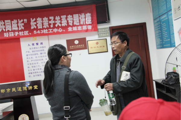 讲座结束后,居民向杨老师请教关于如何做好隔代教育的问题。
