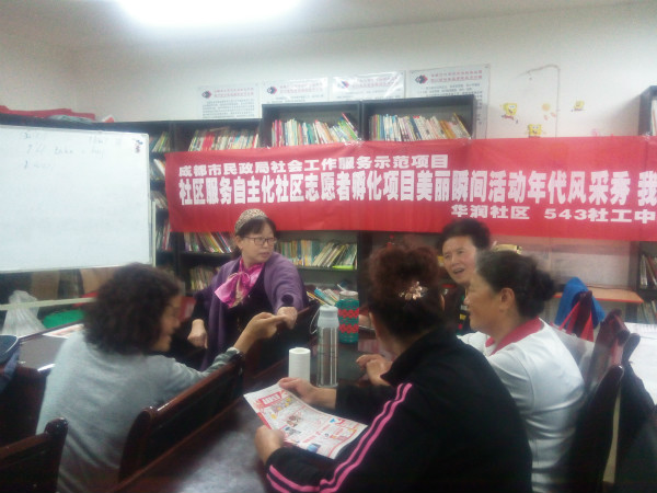 社区服务自主化—社区志愿者孵化项目是成都市民政局出资的社会工作服务示范项目,由成都市成华区543社工中心携手成都市青羊区全域志愿者社工服务中心精心策划并实施开展,落地单位为成都市成华区万年场街道华润社区。通过社区志愿者队伍的建立、管理,搭建和维护“社区服务自主化”平台,在社区建立志愿服务家园,通过自下而上的社区自治模式,让社区居民主动参与社区建设与发展;通过一系列子项目活动的开展,丰富居民生活,增加邻里互动,实现社区的稳定繁荣与发展。