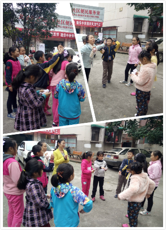 接着,社工带领小组成员来到室外,开展了游戏“姓名、地点、动作”。组员分别在三张纸上写上自己创作的“姓名、地点、动作”,如大象、在云上、跳舞,然后由志愿者收集分别放在三个纸袋里。由组员们分别从三个纸袋(盒)选出三个纸条,并表演上面的动作,十分有趣。这样每个人都有平等的机会上台锻炼。游戏增加理了活动氛围与趣味性;群体中锻炼个体表现能力,从而增加人际交往能力。