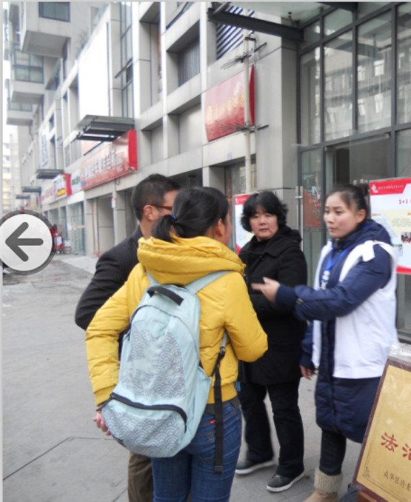 华西都市报记者(身穿黄色衣服)采访诸阿姨