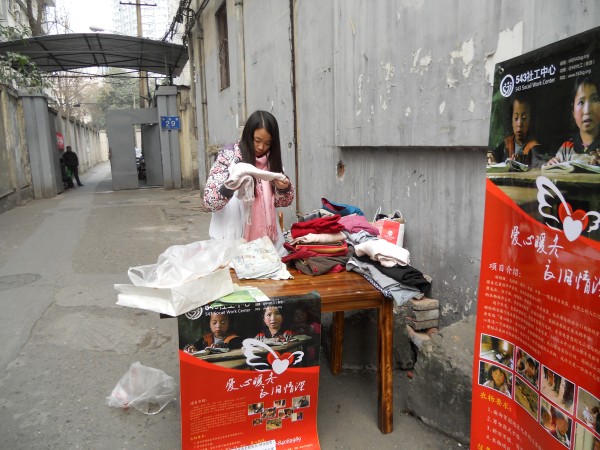 543社工走访羊市街社区,深入各院落,分发爱心募捐宣传资料,并定时、定点进行衣物募捐宣传,得到了广大社区居民的强烈支持与积极响应。通过新闻、微博扩大了宣传范围,有许多外地爱心人士不远万里将衣物邮寄过来,用实际行动证明了爱心无疆。
