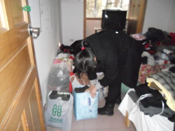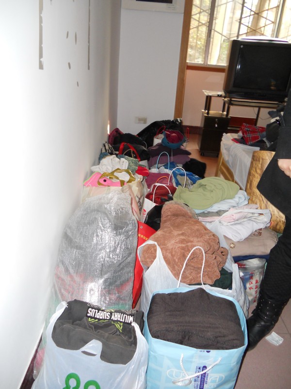 堆积如山的衣物,社工累地气喘吁吁,但心里却是非常高兴,因为有了这些爱心,山区孩子就可以温暖过年了。