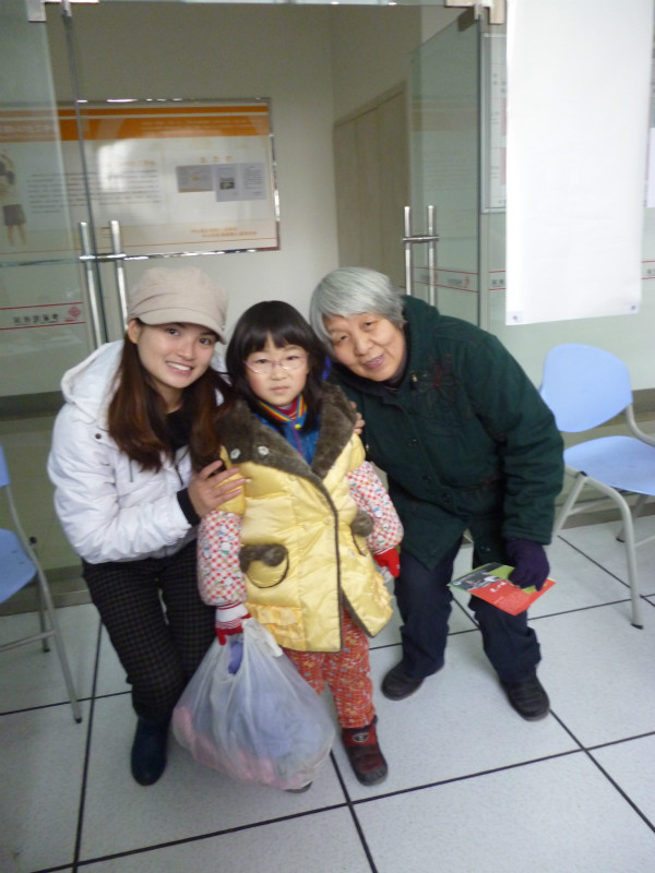 小镇榕在奶奶的带领下,提着衣物来献爱心