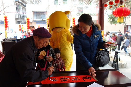 此次活动受到了关工委的大力支持,来自关工委的老师为居民们写下代表吉祥祝福的春联。站点的手工老师也拿出自己的绝招,教授居民们自己动手制作带有福气的手工艺品,让居民们都带福回家。