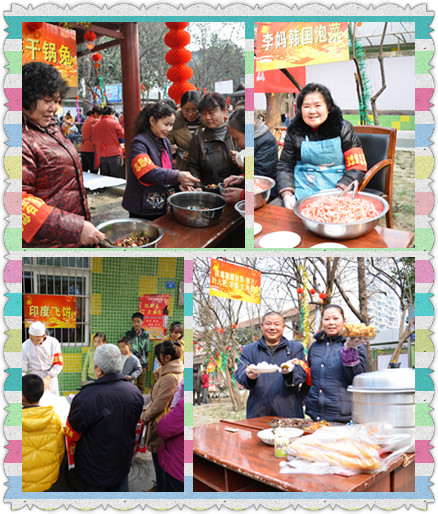 过大年,逛庙会,当然少不了吃,各色风味独特的吃食是庙会上的绝对亮点。此次庙会活动,社区里每个院落的居民贡献一道菜,就产生了眼前这桌独特的“百家宴”:红油饺子、炖鸡汤、三丝夹锅盔、萍姐干锅鸡……主食固然美味,但是特色小吃更是诱人,印度飞饼、糖饼、冰糖葫芦、武大郎炊饼、韩国泡菜……在这一大桌的美食面前,居民们就只能一件事了——那就是一饱口福。