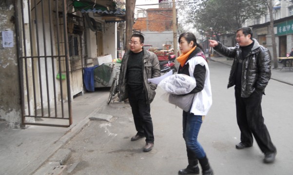 社工与社区高书记拜访老人时,受到社区居民的热情指引