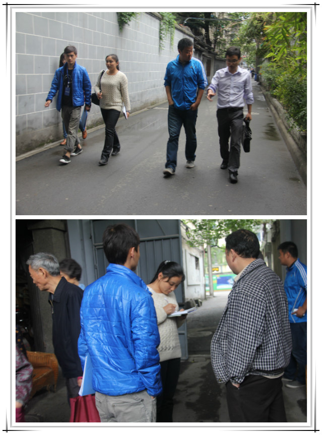 5月17日,在与成都市青羊区羊市街社区领导商讨活动开展流程及相关事宜之后,驻点543社工引领两位中国移动通信集团公司工作人员走访羊市街社区各大院落,了解具体情况,因地制宜,进行活动的前期准备。