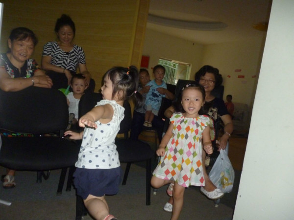 小朋友们在电影结束后,跳起了骑马舞
