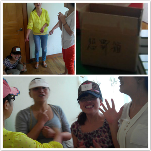 8月30日一大早,5位社工便开始雀跃起来:骑着自行车、采购物品、到达场地、游戏竞赛,现场一片欢声笑语。“帽子上的词语”游戏,一个个让人意向不到的词,"旅游"、“UFO”等让猜词者冥思苦想,不得其解;在“你画我猜”环节中,闻鸡起舞、排山倒海、挤公交这些考题前,社工们更是使尽了浑身解数,手在比划着,眼睛暗示着,各种动作,可爱至极。同工之间相互协作、配合默契,更加增进了相互之间的了解。