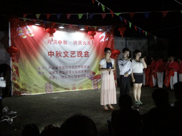 9月17日晚,由四川省雅安市芦山县民政局社会工作服务站主办,成都高新区益多公益服务中心、543社工中心雅安项目工作组承办的“月满中秋,情满火炬”中秋文艺晚会在四川省雅安市芦山县芦阳镇火炬村益多公益服务站正式拉开了帷幕。来自雅安市及芦山县民政局相关领导、兄弟机构以及附近居民将近300人到晚会现场观看了节目。