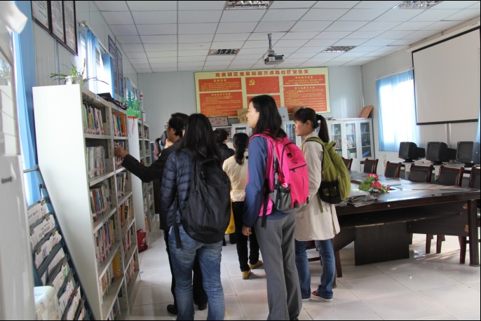 张书记陪同543社工、无国界社工一同进入社区“志愿者服务站”内参观