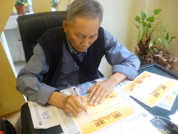 江爷爷正在认真写奖状