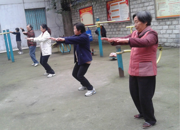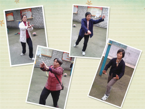 婆婆们认真打着太极拳,强生健体,刻不容缓