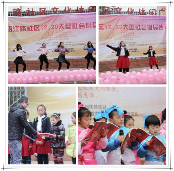 下午2点,在主持人温馨的问候声中,活动正式拉开序幕!明江路社区书记上台致辞,表达了对543社工的诚挚谢意和对居民们的深切祝福!由四川大学志愿者带来精彩的开场舞,主角儿们“粉墨登场”了!一支充满爱心的社区青少年志愿队,一群纯真可爱的社区小天使,歌剧《老吾老幼吾幼》、歌舞表演《让我们荡起双桨》、竖笛《梁祝》、国学经典诵读……他们用赤子之心演绎一段段感人故事,用爱传递一丝丝明媚温暖,“让爱飞”,这个冬天,不再寒冷!