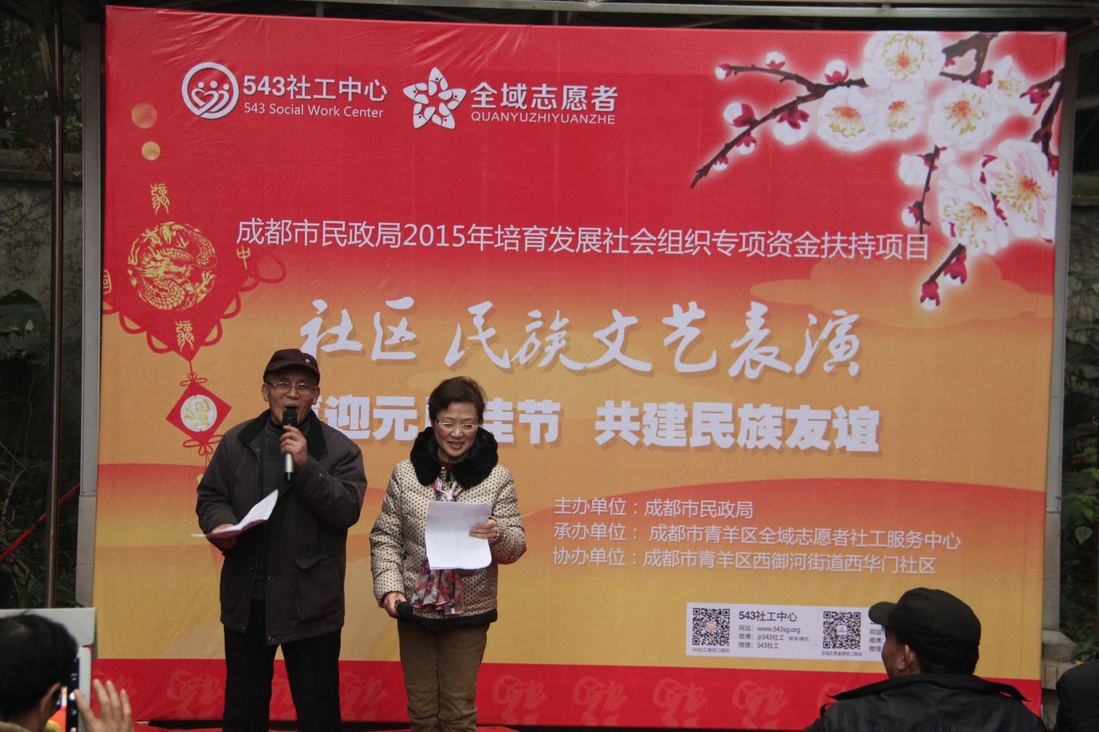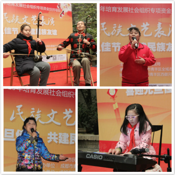 为增进社区汉族与少数民族居民之间的民族友谊,营造喜庆、温馨的元旦节日氛围,2015年12月31日下午两点,社区民族文艺表演活动于成都市青羊区西华门社区横金家坝46号院盛大开幕!活动得到成都市民政局、西华门社区的大力支持,100余名社区居民及成都市伊斯兰教协会成员热情参与其中!